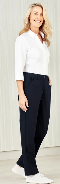Straight leg pant shape, with side pockets, key loop and belt loops
