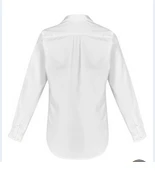 - Ladies style features semi-fitted silhouette, with shirt tail hem and back box pleat