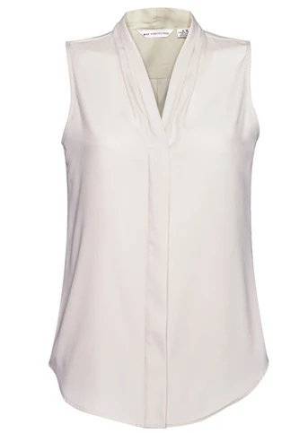 Easy elegance. Our Madison sleeveless blouse has a clean, shawl collar neckline and concealed buttons, creating a beautiful understated silhouette. Perfect for warmer climates or for layering under a jacket. |