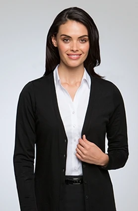 StylingLonger body length, Long Sleeve, 7 Button Over knit