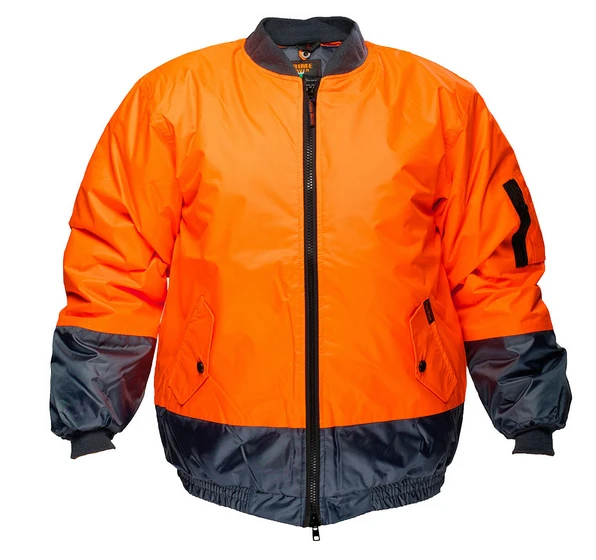 2 toned Hi-Vis Waterproof Bomber Jacket with tuck away waterproof hood.