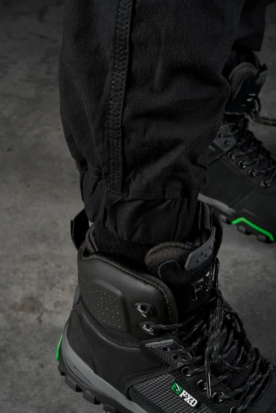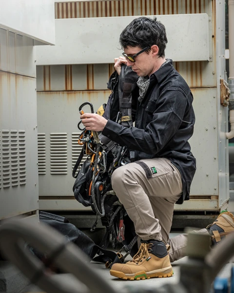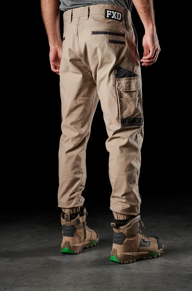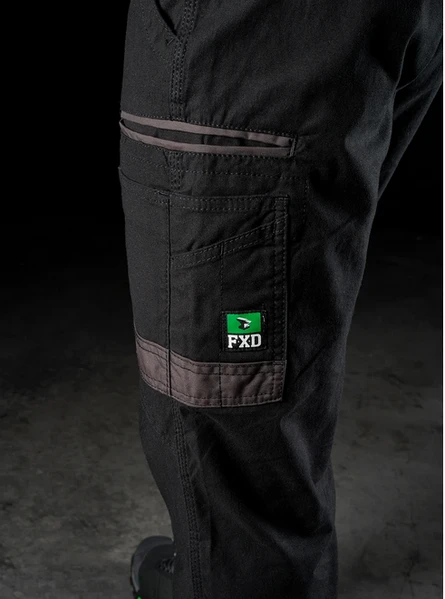 - Back yoke and knee stretch panels